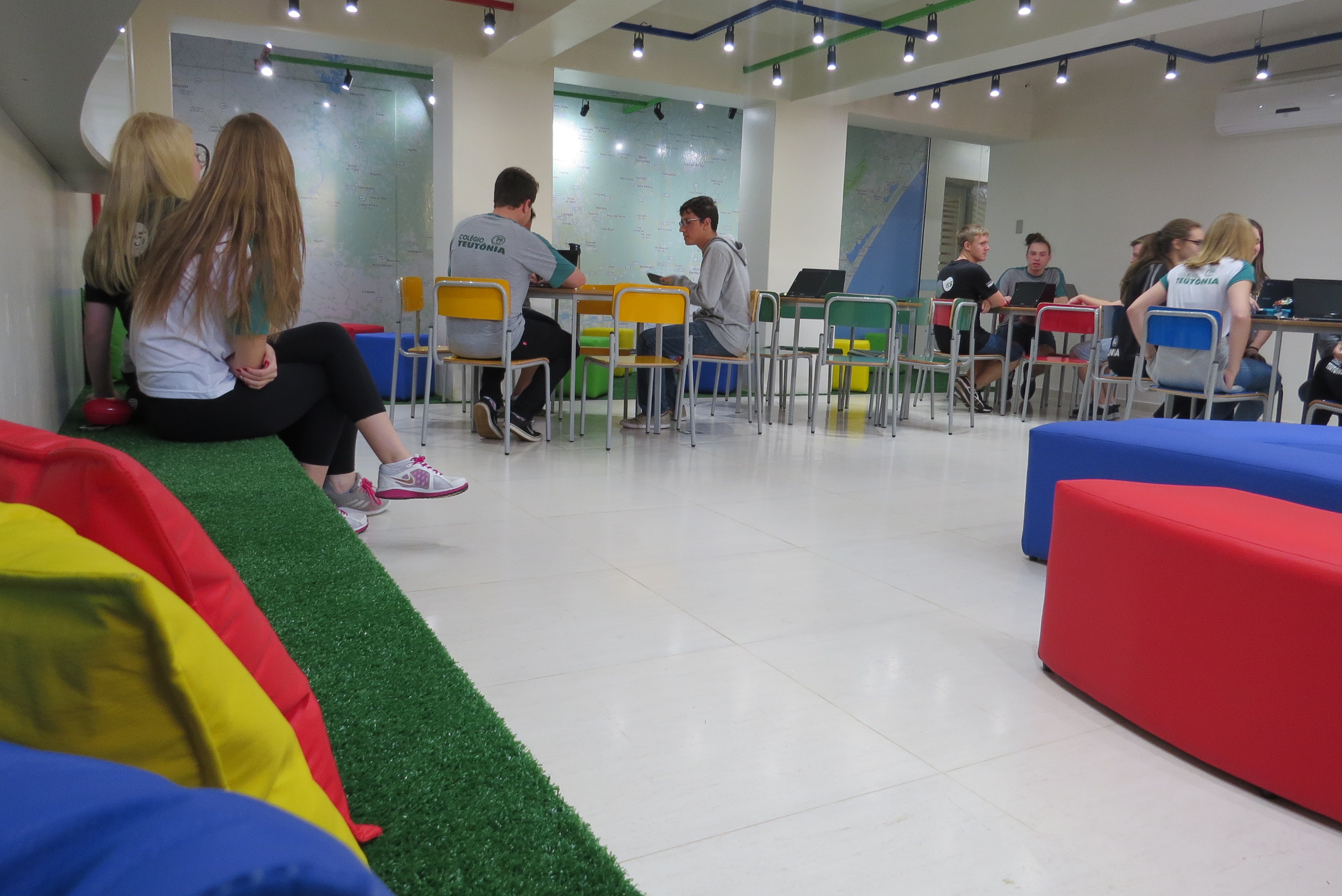 A proposta busca um novo conceito de tecnologia e aprendizagem. Com mesas, puffs, mapas, notebooks e ornamentações com as cores do Google (azul, vermelho, amarelo e verde), a sala é decorada com design e tendências diferenciadas.