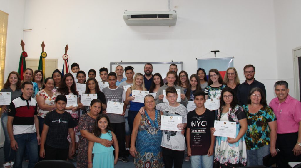 O Salão Nobre da Prefeitura de Estrela sediou, na tarde de sexta-feira (04/05), a quinta e última formatura da primeira temporada do Programa Jovem Aprendiz – Desenvolvendo Gerações. Após cumprirem a capacitação proporcionada pelo programa, mais 30 jovens estrelenses na faixa etária dos 14 aos 17 anos puderam receber seus certificados, em ato que contou com a presença do Prefeito Estrela, Rafael Mallmann, do secretário Municipal do Desenvolvimento Social, Trabalho e Habitação (Sedesth) de Estrela, José Itamar Alves, pasta responsável pela oferta do curso, além de familiares e outras autoridades.