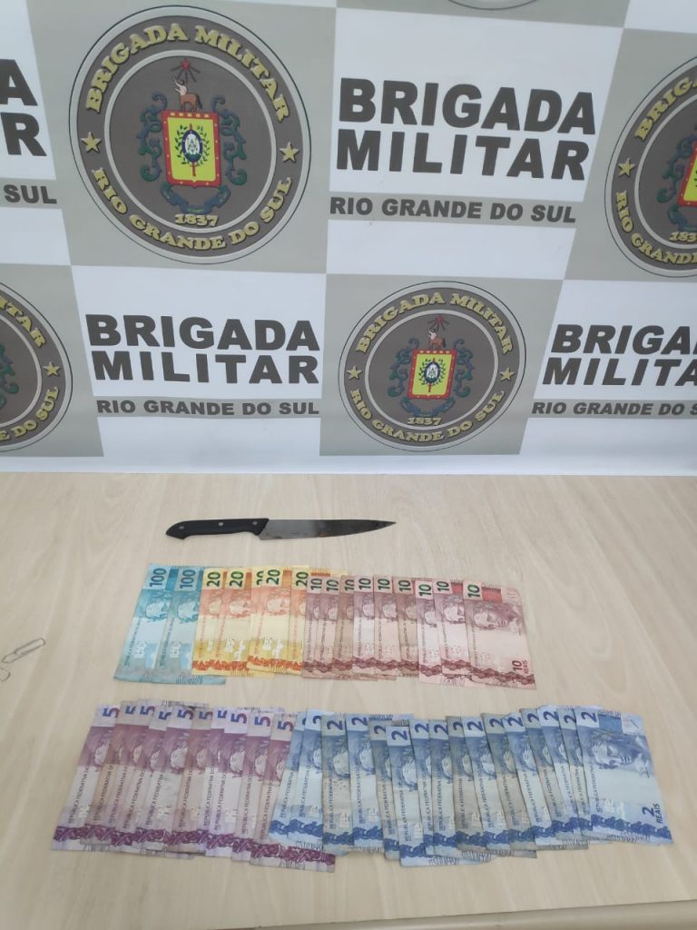 Um homem foi preso após um roubo a estabelecimento comercial por volta das 14h11 desta terça-feira (23/2) em Estrela. A guarnição da Brigada Militar foi informada sobre um homem branco de bermuda e moletom preto, que entrou em uma loja com uma faca, se aproximou da gerente e pediu o dinheiro do caixa. Segundo a vítima, o autor pegou todo dinheiro do caixa e fugiu do local a pé. Após buscas, ele foi localizado, já sem o moletom. Após abordagem e identificação, foram localizados com ele R$ 472, e confessou ter roubado o estabelecimento. A vítima reconheceu o indivíduo. Ele informou que se desfez da faca e do moletom, que foram localizados posteriormente. Ele foi algemado e preso, conduzido ao HPS e posteriormente apresentado na DPPA de Estrela.