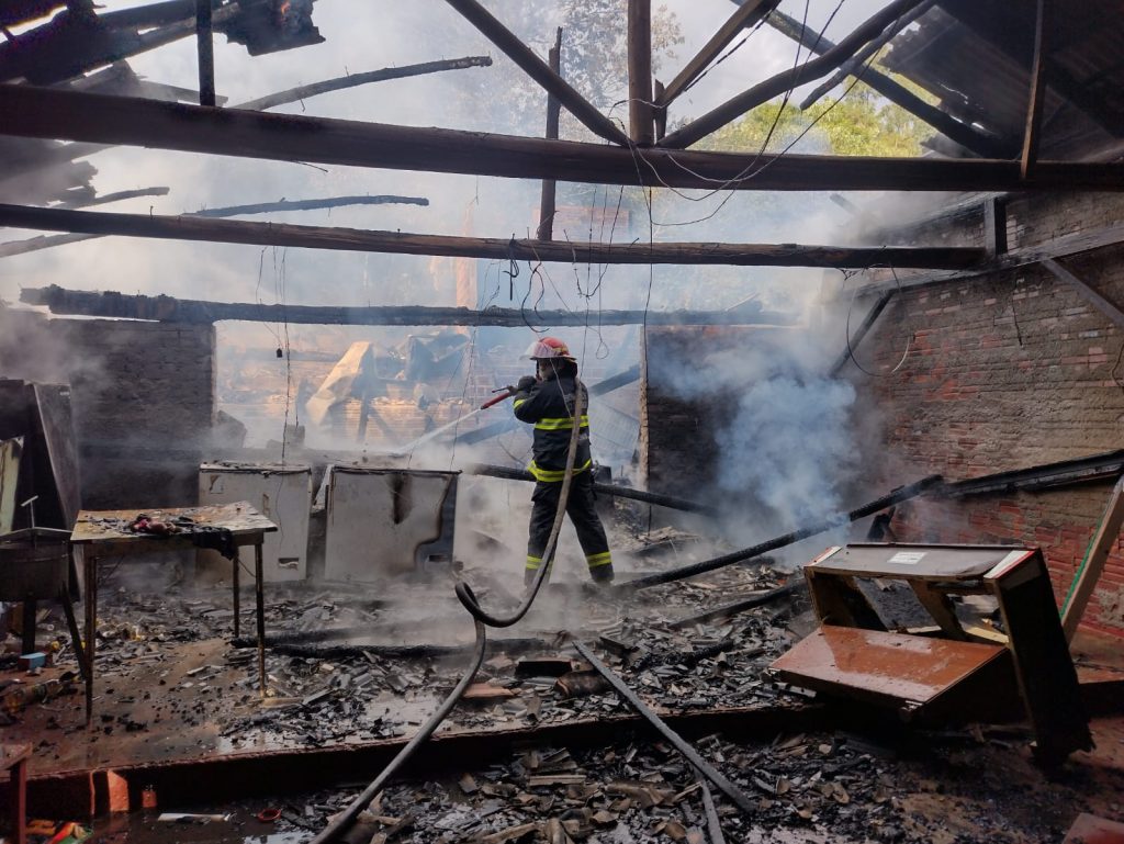 Um incêndio destruiu parcialmente uma residência de madeira, por volta das 15h desta quarta-feira (11/08), na Linha Paissandu Fundos, no interior de Westfália.