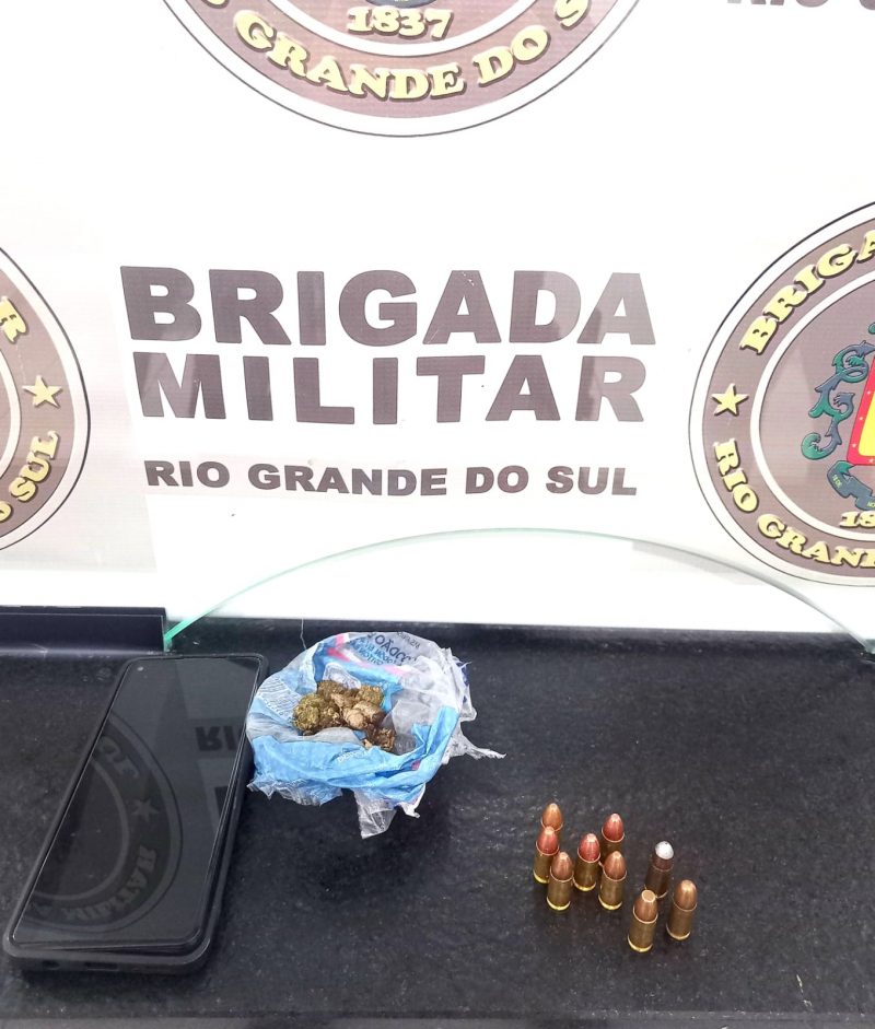 No seu bolso, os policiais apreenderam 10 munições 9mm e uma porção de 6gr de maconha. Porém, não foi localizada nenhuma arma de fogo no local ou arredores.