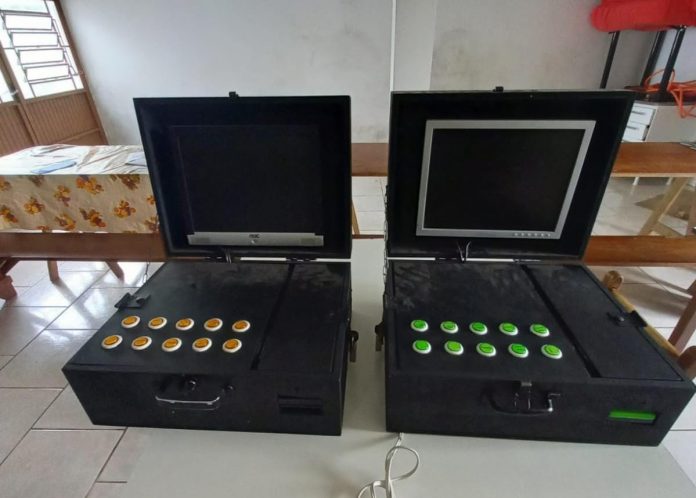Foram recolhidas duas placas mãe e dois leitores de cédulas, assim como o dinheiro que estava no interior das máquinas.