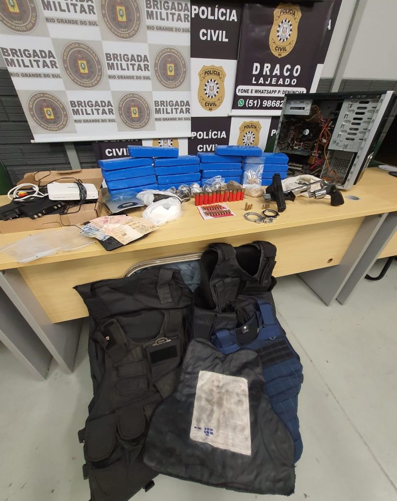 Durante as prisões, os policiais descobriram o local onde o indivíduo armazenava drogas, em um apartamento no Bairro São Cristóvão. Apreendidos aproximadamente 14 quilos de maconha, além de um 1,5kg de haxixe, porções de MDMA (droga sintética) e 200g de cocaína. Também foram apreendidas 33 munições de diversos calibres, um revólver calibre 38, um simulacro de pistola, três balanças de precisão, dois coletes balísticos e três capas de coletes, outros aparelhos eletrônicos e documentos relacionados ao tráfico de Drogas.