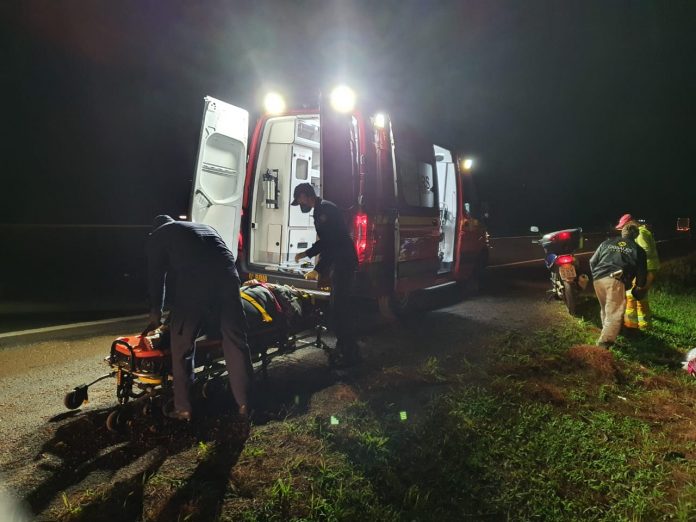 Carona de moto sofre escoriações após sofrer uma convulsão e cair na BR-386 em Estrela