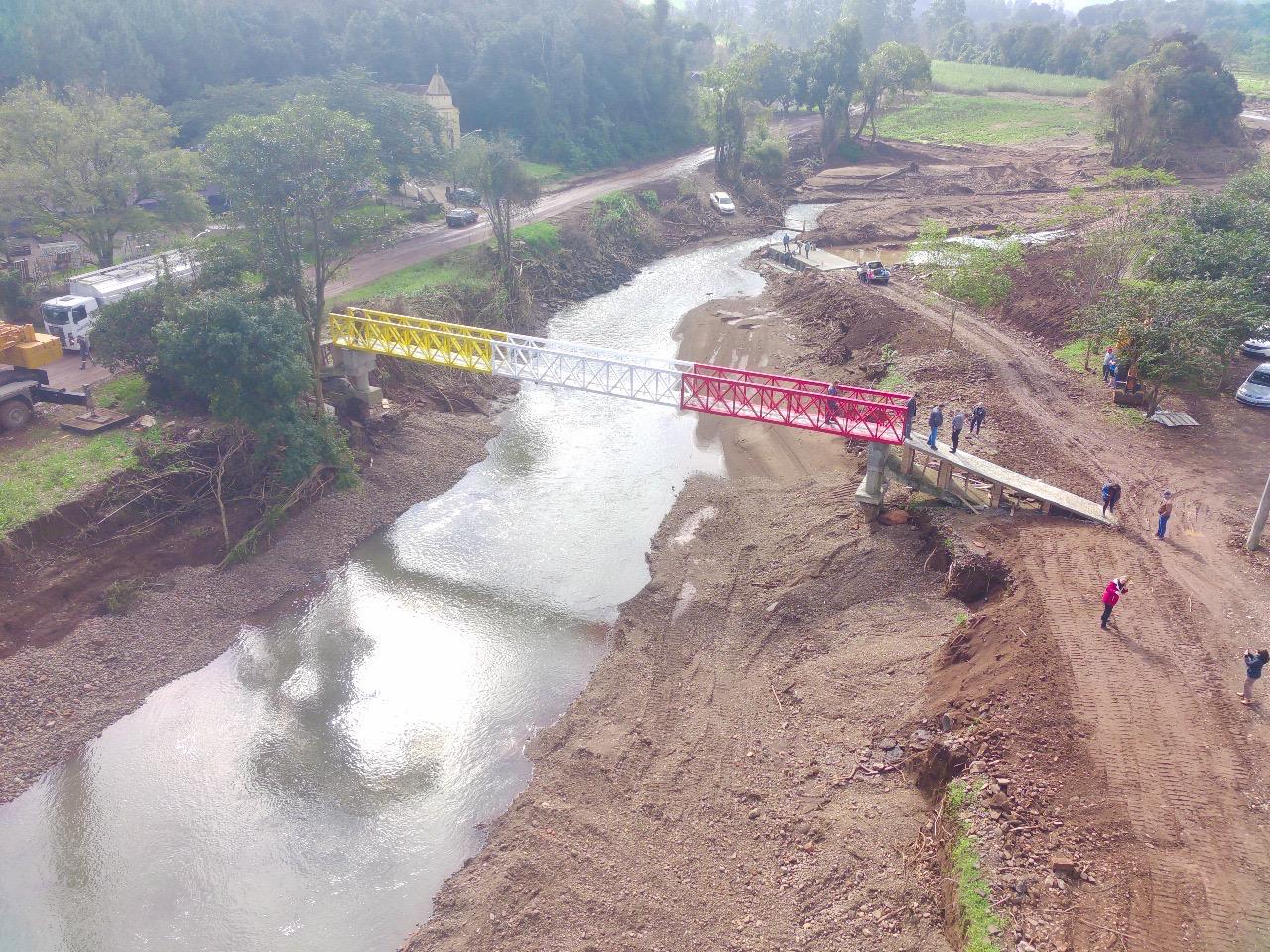 Construção da ponte fica entre a passagem provisória em concreto e a passarela / Crédito: Cris Thomé - Divulgação