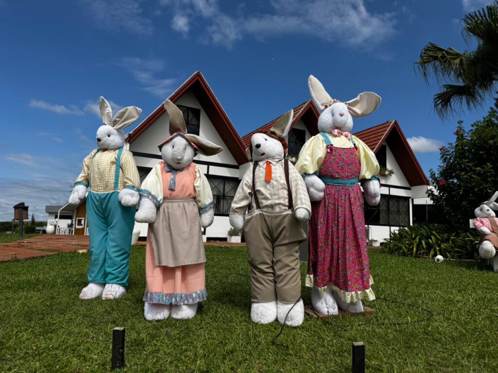 Também está previsto um momento musical com Marco e Nando. Durante a tarde, personagens ligados à temática da Páscoa devem circular pelo espaço e interagir com o público. Além das apresentações, o evento terá pintura facial para crianças, brinquedos infláveis e praça de alimentação. Um dos momentos previstos na programação é a chegada do Coelho da Páscoa, direcionada especialmente ao público infantil.