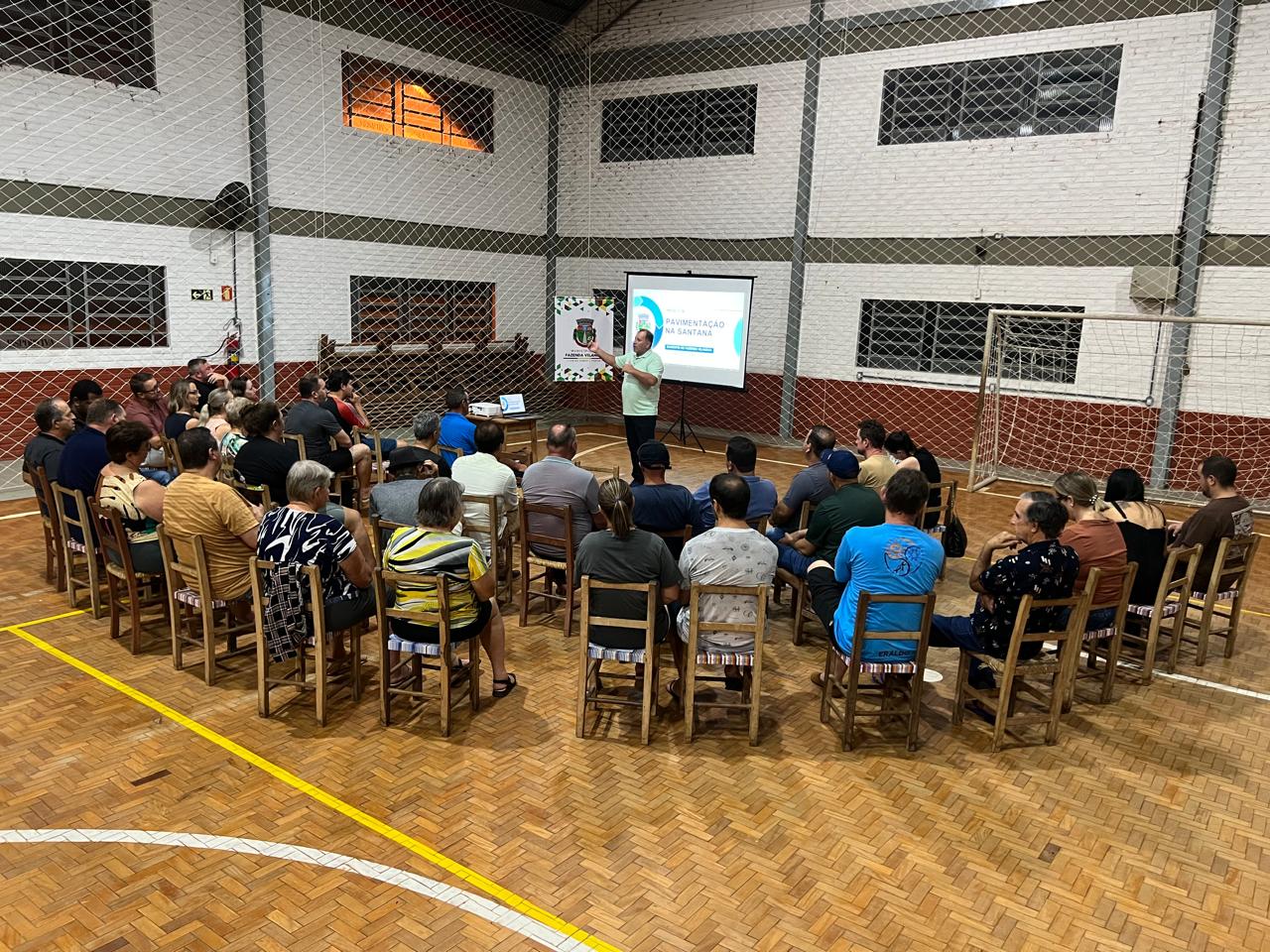 A Administração Municipal de Fazenda Vilanova dá início ao processo de construção do sexto trecho de asfalto rural da cidade. Nesta terça-feira (17/3), o prefeito de Fazenda Vilanova, Amarildo Luis da Silva, secretários municipais e vereadores se reuniram com os moradores da localidade de Santana, no ginásio local.