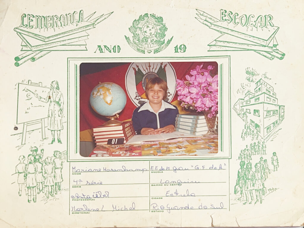 Ex-aluna guarda com carinho as fotografias. Nesta, tinha 10 anos / Crédito: Arquivo pessoal