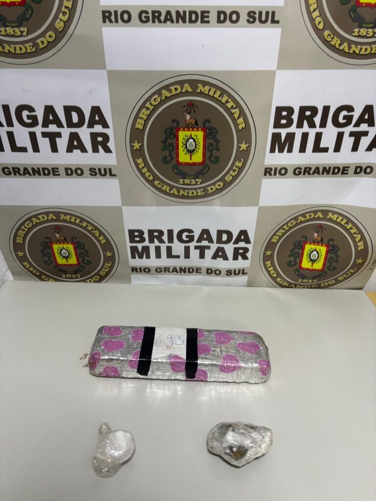 Durante a ocorrência, os policiais apreenderam cerca de 690 gramas de maconha, além de porções menores da droga, conhecidas como “camarão”, e também cocaína.