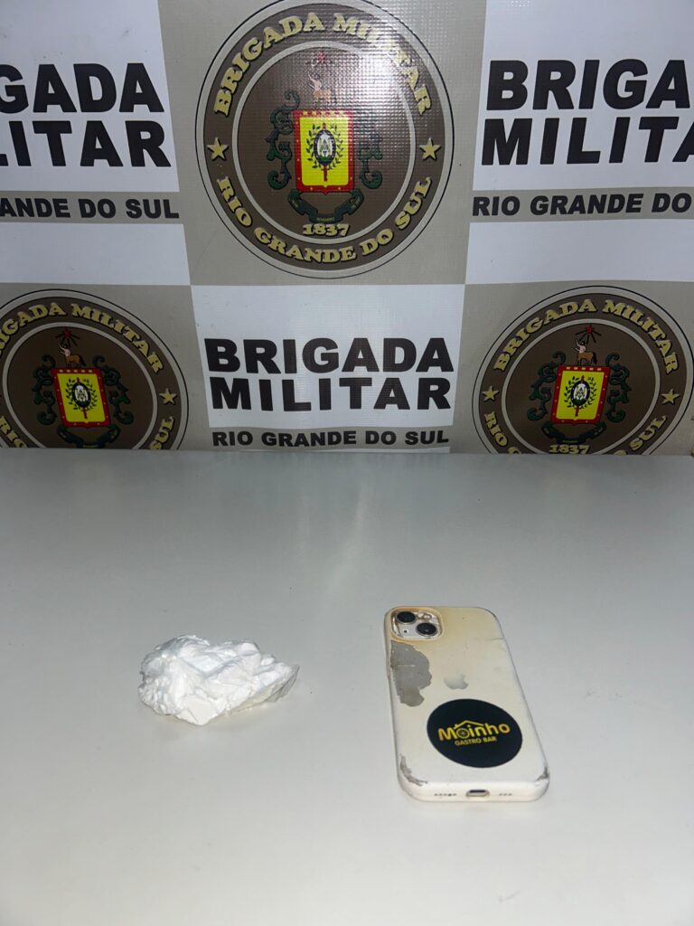 Durante a abordagem, foi apreendida uma porção de cocaína, além de um aparelho celular.